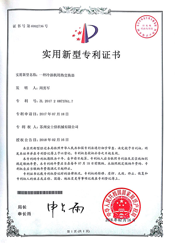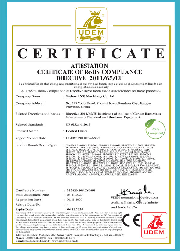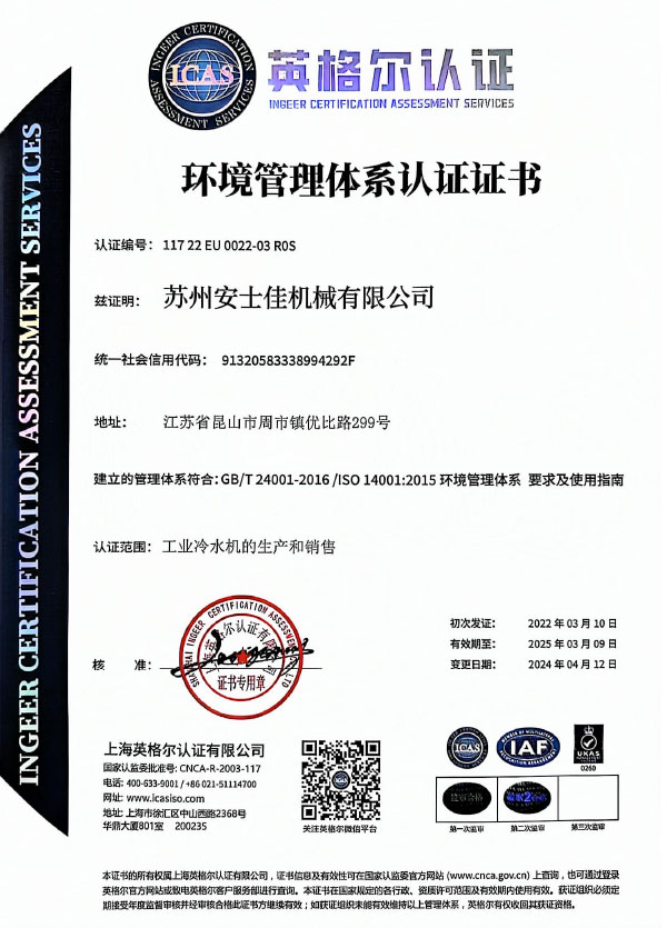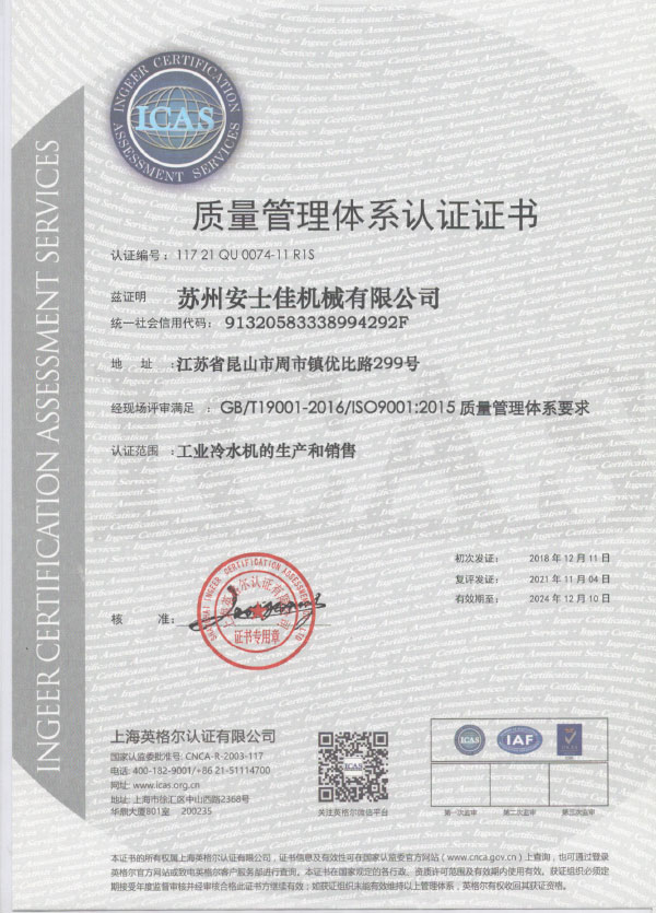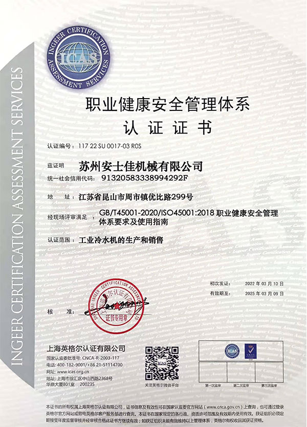 苏州安士佳机械有限公司坐落于苏州昆山市,是一家专注致力于工业温度控制领域的专业研发、制造、售后、服务为一体的创新技术型制造企业。公司秉承“以服务为基础,以质量为生存,以创新为发展”的宗旨,着力提供高品质、智能的工业温控产品、与技术服务。        公司主要产品有高低温冷却测试机、风&水冷式冷水机、冷热一体机、反应釜冷水机、防爆冷水机组、冷风机、冷冻机、螺杆冷水机组等一系列温控产品,并涵盖在各个工业领域,能够满足多种工艺要求,为祖国的工业发展提供高品质高性价比的温控机组。